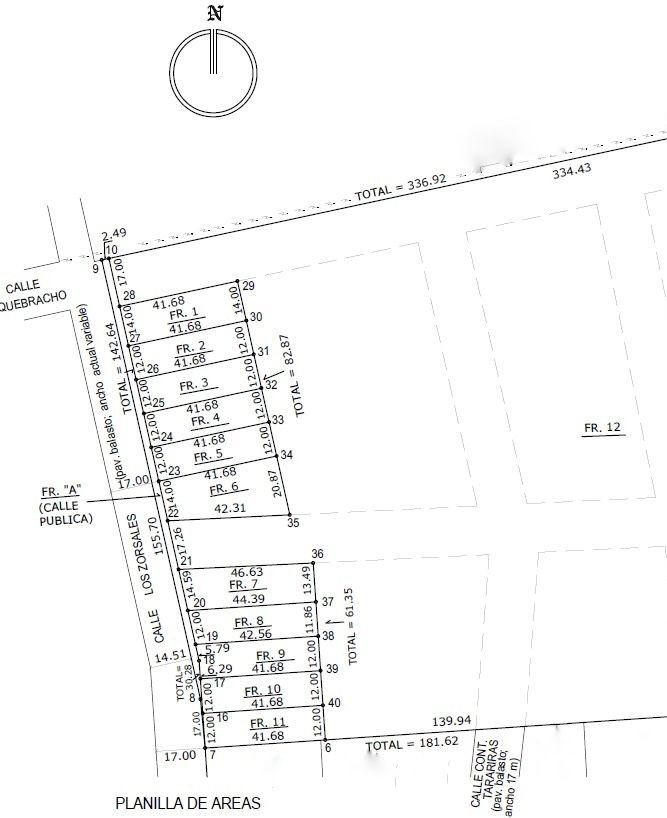 Terreno 9: Superficie total 502.68m²/Frente 12m/Precio USD 22.000